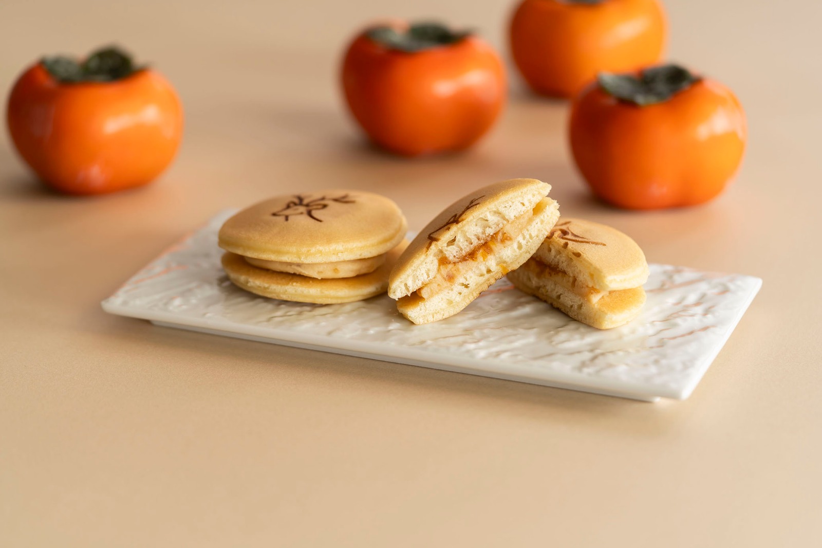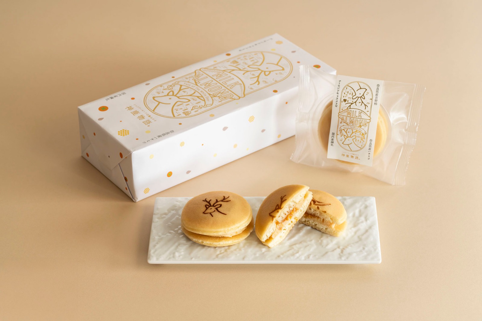 中身の餡は神鹿物語シリーズおなじみのミルク餡とローストアーモンドに加え、今回は奈良県吉野産の富有柿のジャムを挟んでいます。